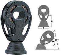 sheave with radiused edges to protect line. Sculpted aluminum