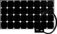 | Solar cell type | Monocrystalline | Output power | 100 W | Rated current | 5.43 A | Rated DC voltage | 18.4 V | | Open-circuit voltage | 22.6 V | | Module efficiency | 15.34% | | Connectivity | MC4 connectors | | Solar controller | 30 A PWM, multi battery option, 4 stage charging, digital display and flush mount | | Frame type | Silver / black anodized aluminum frame | | Certifications | CE | | Dimensions | 47.09 x 21.46 x 1.38 in / 1196 x 545 x 35 mm | Weight | 17.6 lbs / 8 kg | Warranty | 25 years (module) / 5 years (controller) |