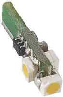| Fits Socket | T-1 3/4 (wedge base) | | Typical Applications | Courtesy lights | | Dimensions | 0.73" x 0.21" (18.4mm x 5.3mm) | | Input Voltage | 10-17VDC | | Current Draw | 30mA/12V | | LED Emitting Color | Warm White | | LED Type/Quantity | 3 x LEDs | | Beam Angle (FWHM) | 120° (3 directions) | | Halogen Equivalency | <5W | | Warranty | 2 Years |