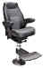 The seat tilts to allow for a standing steering position. Polished stainless steel armrests.