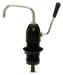 Vertical plunger pump with angled outlet spout in black, white or gray plastic.